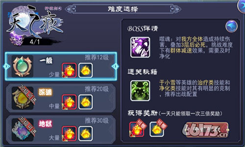 三大秘境的一般难度相对较为简单,通关较为简单,但是相对于每天最多三次的限制,收获却相对少很多。所以,不断提升实力,挑战更高难度,才是根本,况且失败还不消耗“异界石”。
