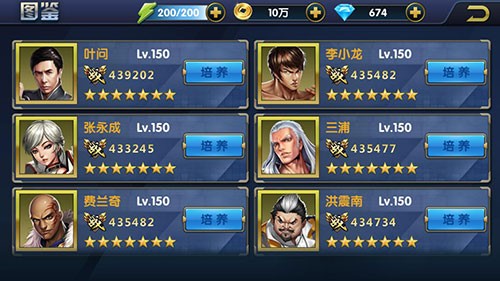 《叶问3》手游中,玩家收集的宗师们可以通过图鉴轻松查看,可以随时看到自己获取宗师的情况,点击每位宗师后方培养功能键即可打开培养界面给宗师进行培养。