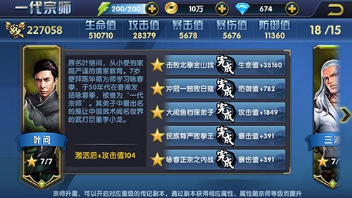 游戏中,玩家通过培养界面中升星提升宗师星级可以解锁一代宗师中该宗师相对应的传记副本,通过传记副本可以获得相应属性和战力加成。该宗师获得的属性加成根据该宗师等级的提升而提升。