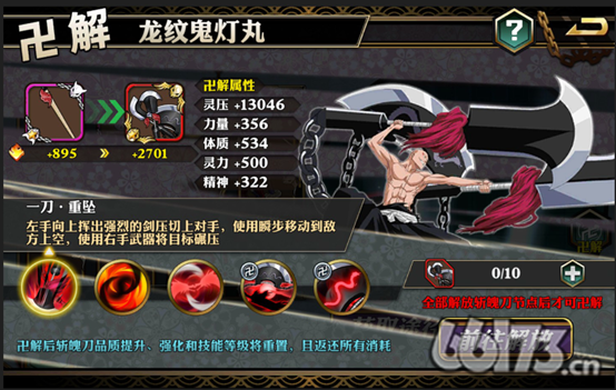 在6月16日开放的全新版本中,将会开放游戏内的第一把卍解斩魄刀——龙纹鬼灯丸。卍解后的斩魄刀,不仅会获得卍解属性的加成,还将得到全新的姿态和招式,更有炫酷无比的卍解技能,让玩家们体验到斩魄刀真正的力量!