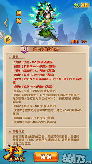 游戏主角是目前唯一可以通过“西游真经”从白色进阶到橙色品质的神将