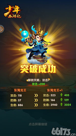 除了【神将升级】外,游戏中还可以通过【神将突破】来提升神将三围属性。