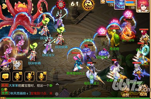 5:如图上,第5阶段。对面位置,以及门派STL,STL,主,FC,LG,前排DF,LG,PT。开场主会喷墨汁,果然人如其名章鱼王,被溅射到的人物,宝宝,都会受到章鱼王的群体法术攻击,倒地一个,章鱼王就会召唤一个怪,怪物门派随机LG,DT,DTL。 所以呢,我们开场龟速血耐,高速血耐宝宝,以免容易被击杀。这个阶段,我们辅助的LH要不停的接起来,不然3法系的高输出状态,是谁都会灭队的。开场我们首先击杀的是STL,然后LG,最后3个辅助。(PS:主怪的伤害很高,被放下了,一样破血辅助700+血,破DT一样800+血,所以注意保持血量,吃一些大金什么的,以免灭队。)