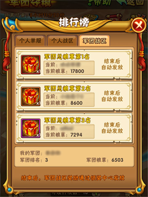 战斗升级,奖励自然也升级啦!除了原有的个人单服排行榜以外,还新增个人战区排行榜和军团战区排行榜。其中军团战区排行榜只要榜上有名就会奖励大量元宝,宝物精炼石以及黄金经验宝物!快叫上你的战友一起战斗上榜吧!