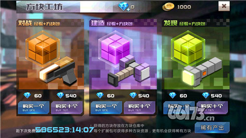 在方块工坊中购买方块扩展包,每个扩展包都有多种方块资源,更有机会获得稀有方块!