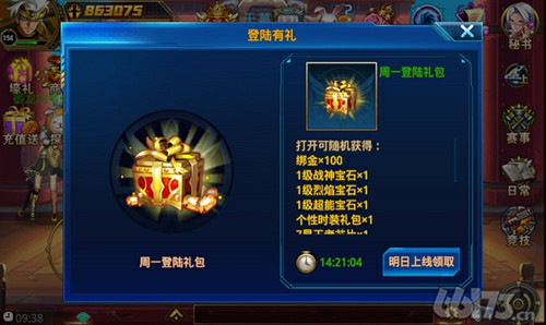 全新登录奖励,免费领取豪华宝箱,有机会开出各种宝石、时装、芯片、神器等稀有道具,让节后各种乏力的你瞬间满血复活。