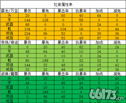 以下是红装属性表,里面统计了一些主要的属性,大家可以根据自己的需求搭配想要的红装。