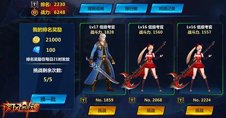 竞技场用有强大的对战系统,每次挑战你将从3名冒险者中选择一位,若你确定对某个冒险者发起挑战,只需点击【挑战】按钮即可。