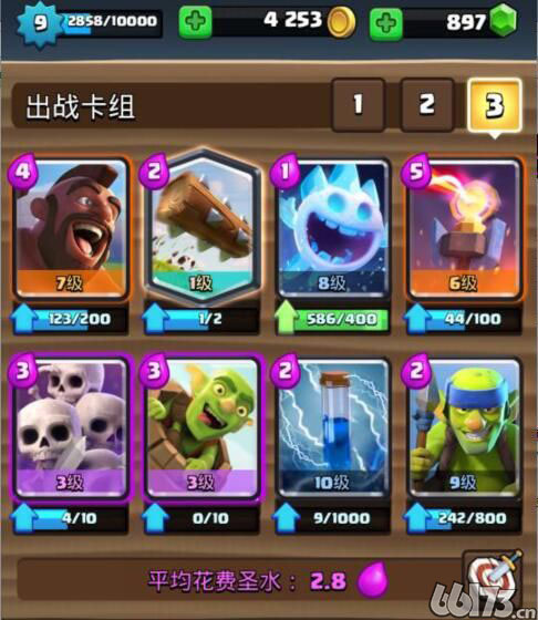 随着圣水收集器和毒药法术的削弱,现在这两张卡牌也是较为少见的,并且以圣水收集器为核心的重型推进流卡组现在也慢慢的变少,反之这个版本的快攻低费流卡组还是非常流行的,下面就给大家带来一个费用较低的快攻滚木