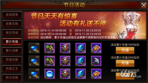 活动内容:节日期间,用户充值达到指定数值,即可获得对应的充值点数,并可在页面中兑 换奖励