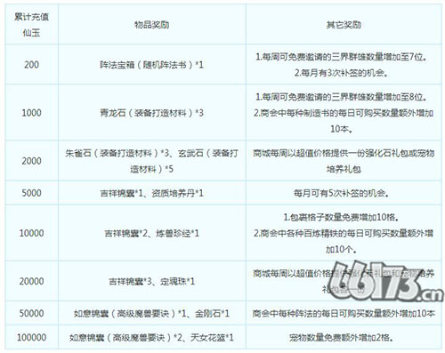 真情回馈玩家,玩家角色累计充值一定数量的仙玉,即可获得额外物品或福利赠送。